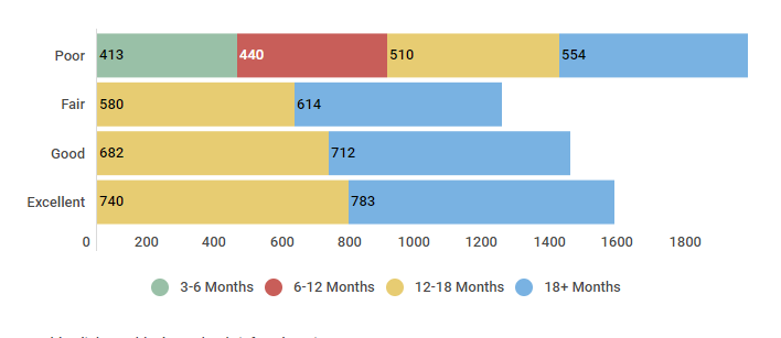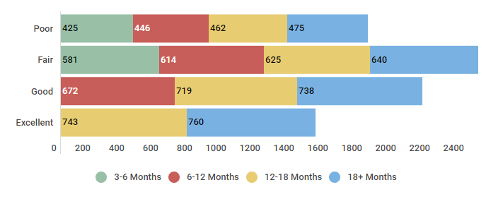 | Credit Score over time | 3-6 Months | 6-12 Months | 12-18 Months | 18+ Months |