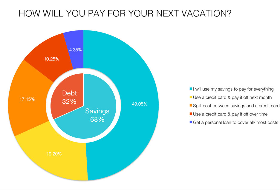 Although credit is a popular option for vacation financing, it isn't in the majority, according to the Credit Sesame survey. For example: