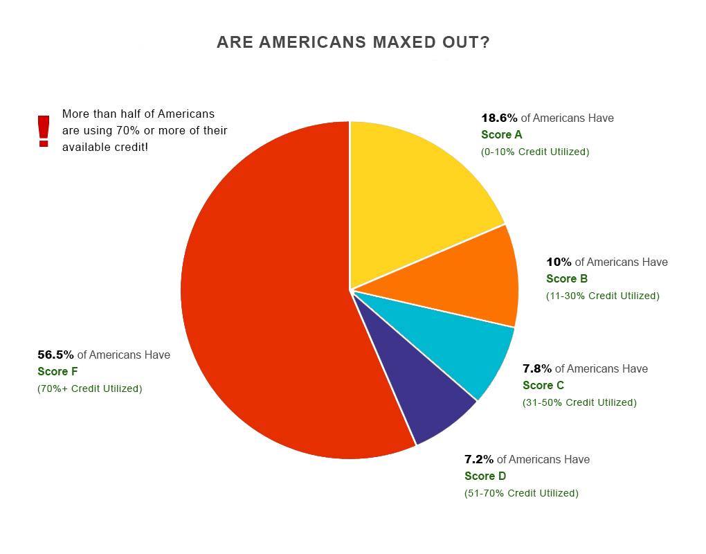 According to Credit Sesame data from the report that was published captured, over fifty percent of Americans are using 70 % of their available credit.
