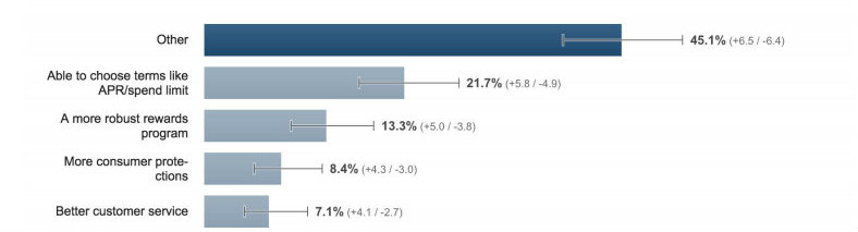 Thirteen percent said they'd obtain a card if it had a better quality rewards program. Forty-five percent answered “other,” and also the most typical responses included: