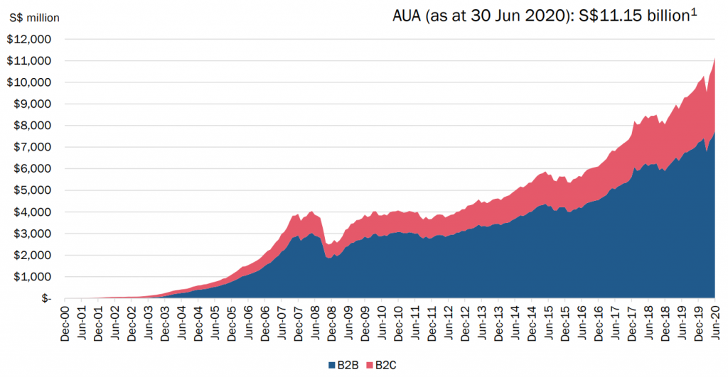 iFAST is already one of the fastest growing businesses. The company started only during the dotcom of 2000. And also over the past 20 years, its net sales hit a record of SGD65 million. Most of it is recurring.