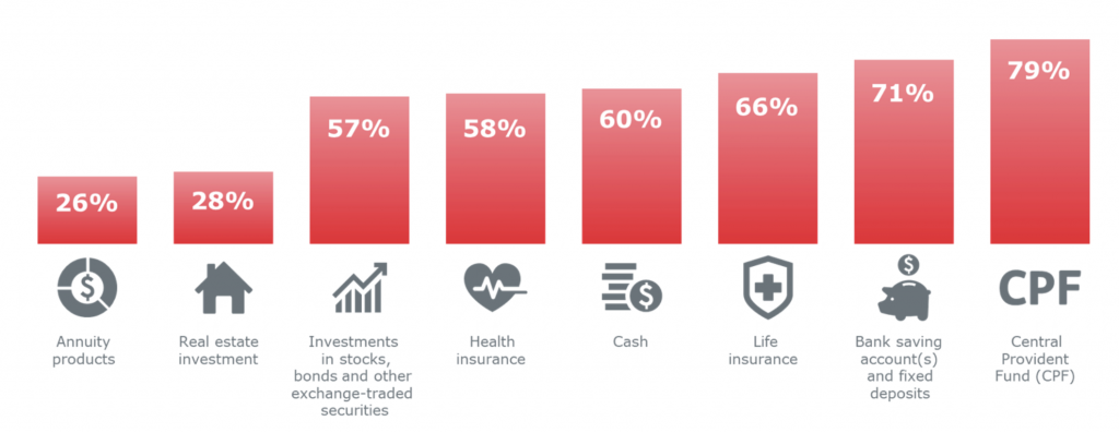 According to Prudential's Saving For 100 research, the top three most popular tools that Singaporeans are using are their CPF (79%) , bank savings accounts and glued deposits (71%) and 66% (life insurance). That can bring us to our next point.