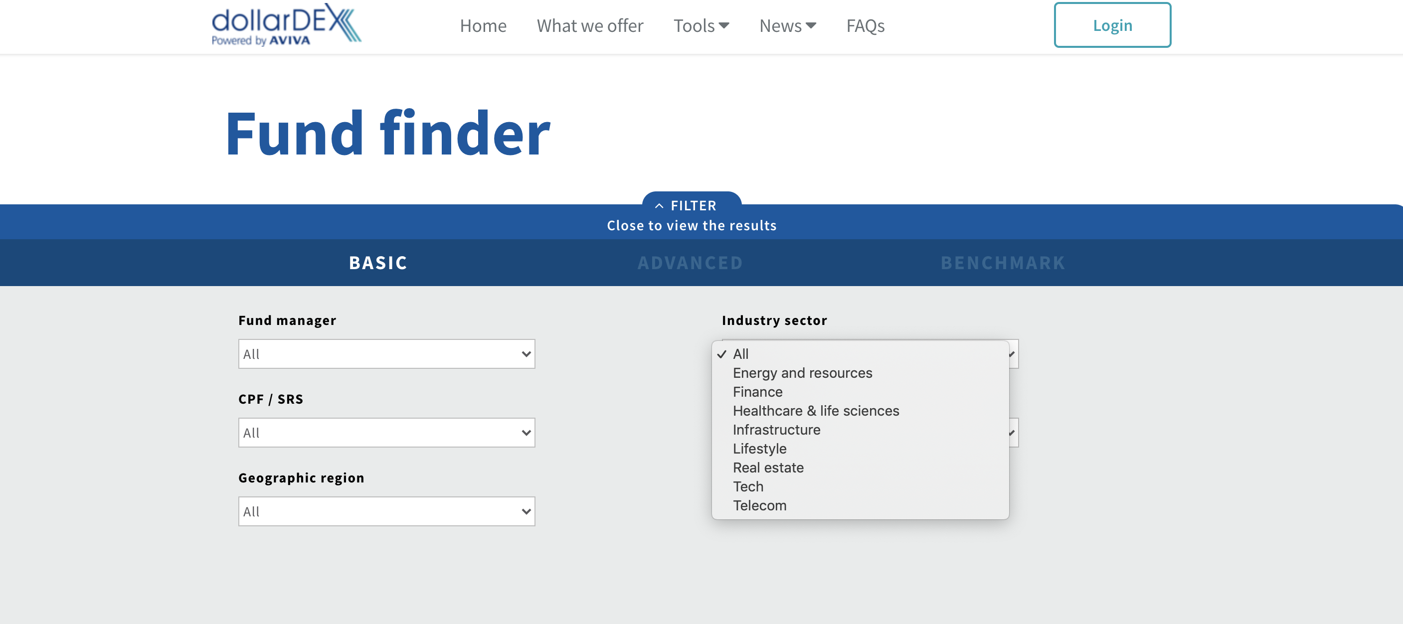 To help investors obtain access to a diversified portfolio of companies within a sector that they want to invest in, dollarDEX, an online investment platform by Aviva, allows investors to invest in mutual funds and unit trusts across a variety of industries and geographic regions. This allows you to choose the kind of investments you intend to make, while having professional fund managers assist you to select a broad base of companies that fit within your investment criteria.