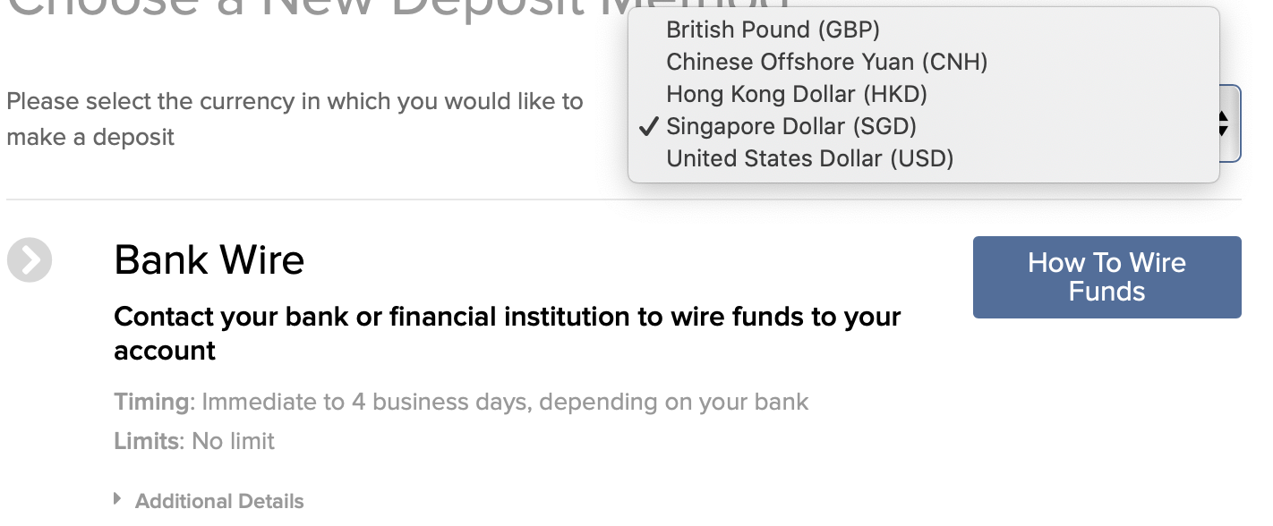 We can also decide to transfer multiple currencies, namely British Pounds, Chinese Yuan, Hong Kong Dollars, US Dollars and Singapore Dollars, into our accounts.