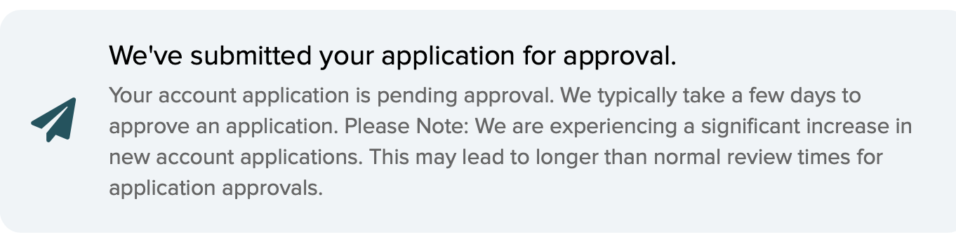 At no more the application process, there was a notification that it will take a few days before the account application is approved. So, we cannot start trading immediately.