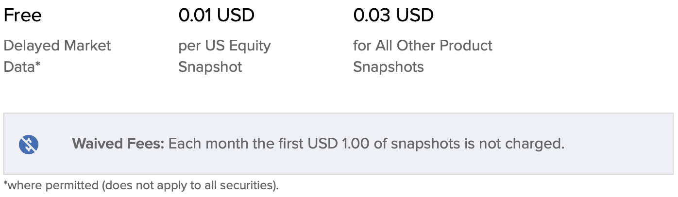 If we do not want to pay a monthly fee, there is also the option of trading via the delayed prices or deciding to receive a “snapshot” of prices whenever we wish to trade. The good thing is that costs are relatively low and fees for the first $1.00 of snapshots we request are waived.