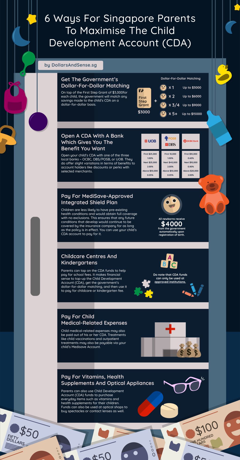 Pro tip: It's worth noting that your child's Medisave Account will earn a pursuit of 5% per year (since she or he would have under $60,000), while profit the CDA would only earn up to 2%. However, MediSave funds tend to have limited usage, while CDA could be allocated to more things. Making more financial sense? We will allow you to mull over it.