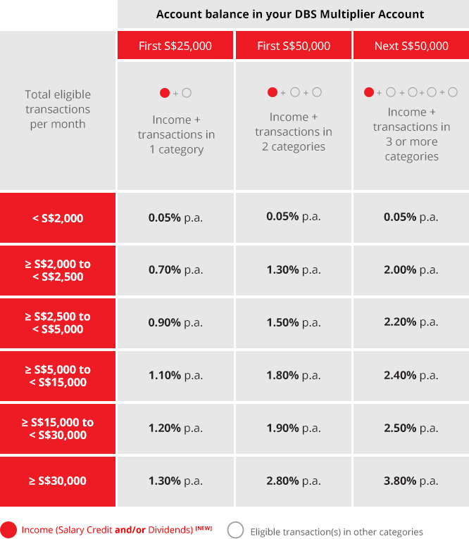 The DBS Multiplier as an individual checking account that provides attractive rates of interest with requirements which are reasonable to achieve. However, DBS Multiplier accounts are just available as a personal account. Which means that DBS Multiplier accounts can't be joint accounts. When there is several account holder to the DBS Multiplier account, you won't enjoy the higher rates of interest accorded.