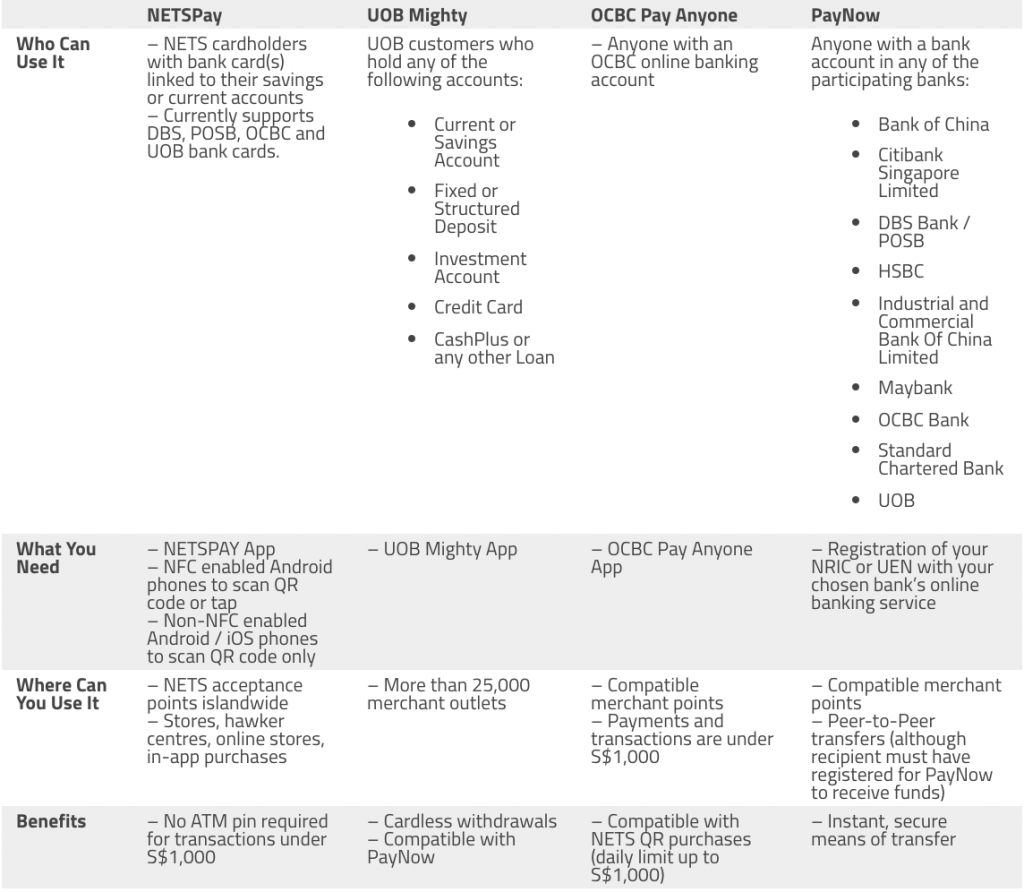 Broadly speaking, you will find 4 types of cashless mobile payment solutions in Singapore: