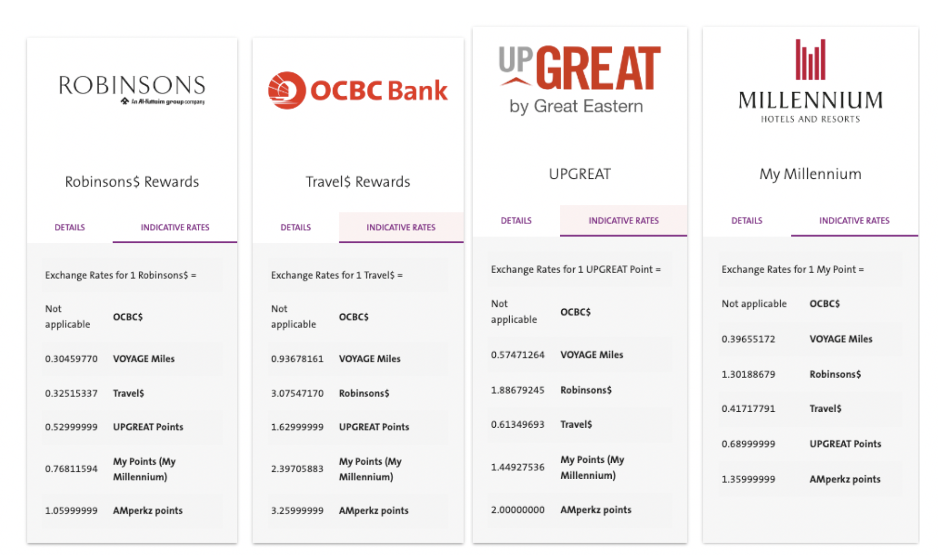 Points could be traded and exchanged across different programmes, with the exception of OCBC$, where the points are only able to be exchange to other rewards, although not the other way around.